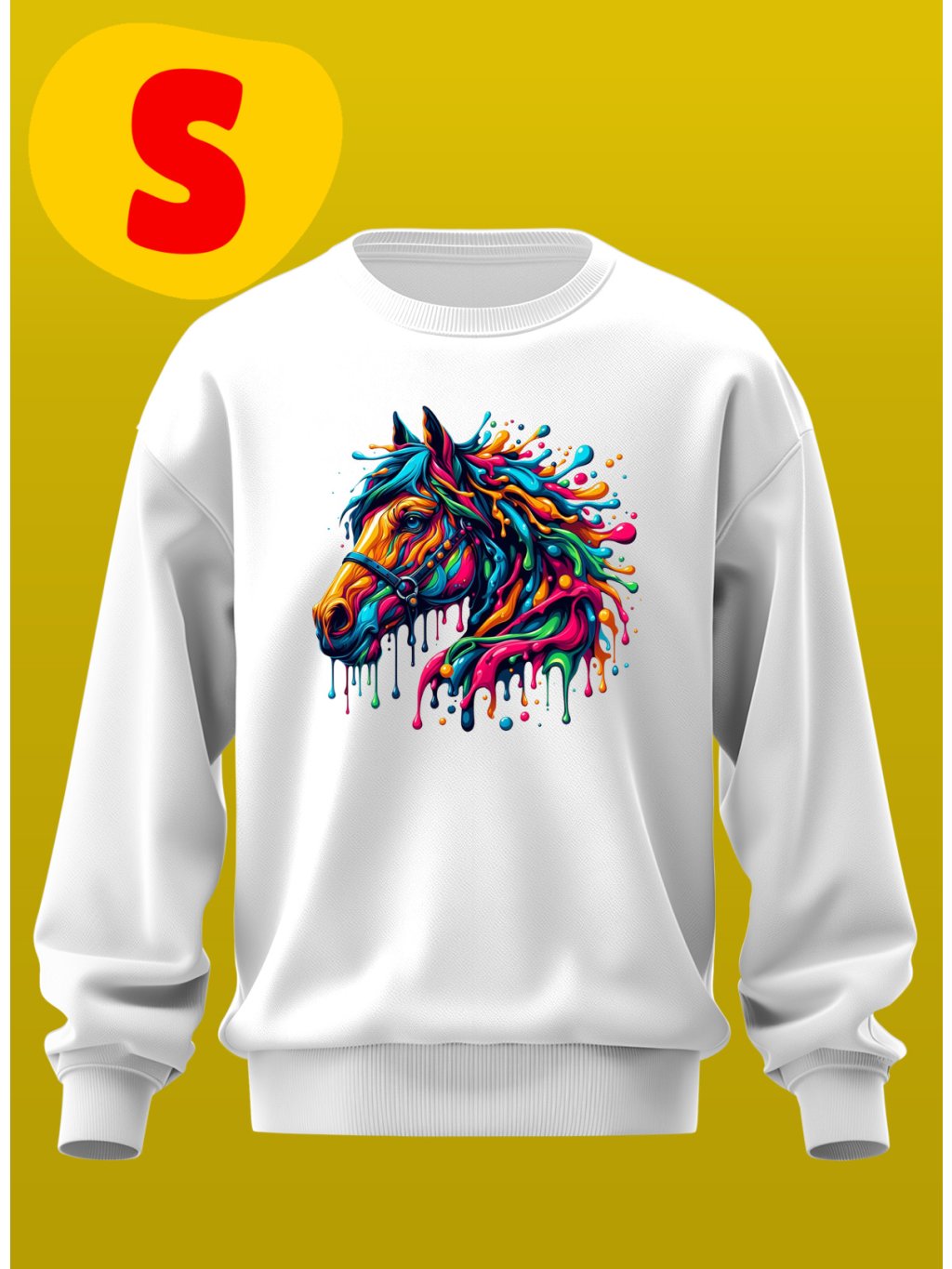 Unisex mikina bez kapuce. 50% bavlna, 50% polyester. Potisk: DTF. Barvy: Černá, bílá, fialová, růžová