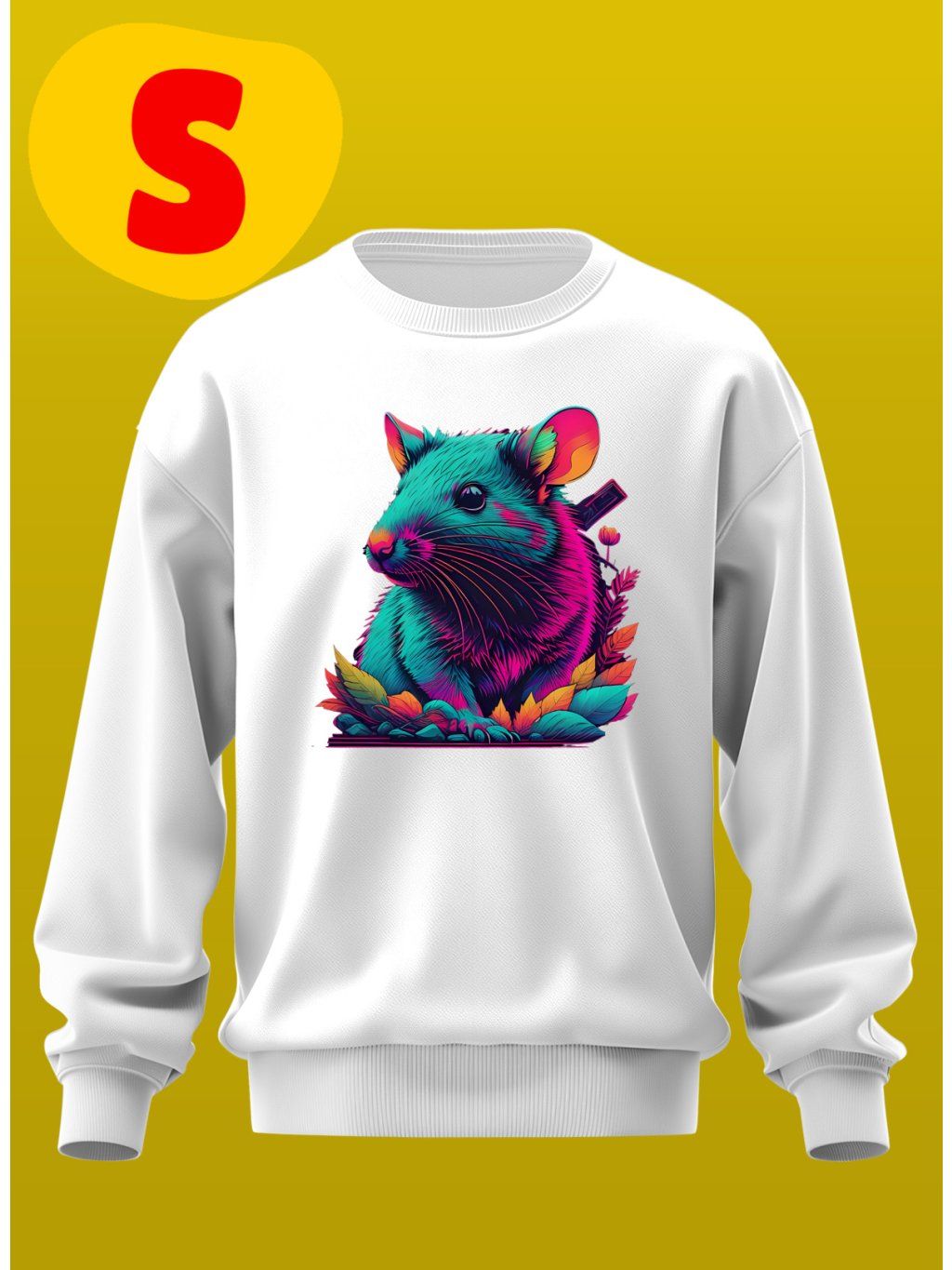 Unisex mikina bez kapuce. 50% bavlna, 50% polyester. Potisk: DTF. Barvy: Černá, bílá, fialová, růžová